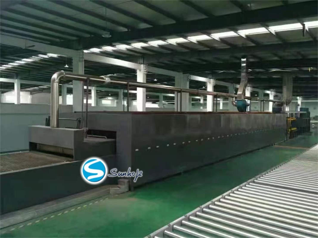El horno que suelda de aluminio de Sunhope es un tipo continuo horno del túnel el soldar de gas natural con cuatro secciones, que se diseña para soldar de aluminio del grado 650-700. Se hace en Guangdong, China, y tiene la exactitud de la temperatura de ±3℃. El poder clasificado de secar zona es 103.45KW, mientras que el consumo del nitrógeno es los cerca de 35~45m 3/h. El tamaño y hacer frente a la altura de la correa de la malla puede ser modificado para requisitos particulares.