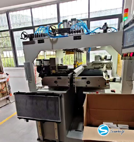 La máquina de fabricación de radiadores tiene dos estaciones de trabajo, lo que permite producir radiadores y tanques de plástico simultáneamente.garantizar que el cliente pueda producir radiadores a la velocidad que requiera.